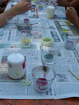 Den Vormittag über dürfen sich alle aussuchen, was sie machen: Ob Tischtennis, Fußball, Steine bunt bemalen oder Teelichtgläser gestalten - für alle ist etwas dabei. Und wer einfach nur mit Freunden zusammen sitzen oder im Zelt etwas lesen möchte, hat auch dazu die Möglichkeit.