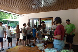 Zum Mittagessen gibt es Kässpätzle mit grünem Salat. Alle langen kräftig zu, denn die viele frische Luft macht hungrig.