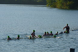 Aber schließlich wollen wir ihnen möglichst genau zeigen, wie ein Camptag aussieht. Deswegen geht es an den See. Die Abkühlung kommt bei den Temperaturen gerade recht.