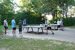 Später spielen einige Teenies das Spiel "Werwolf", andere sind - wie eigentlich den ganzen Tag - an der Tischtennisplatte zu finden. Der Tag endet gemeinsam am Lagerfeuer.