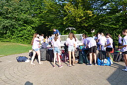 Um 10 Uhr müssen wir uns vom Campgelände verabschieden. Aber noch nicht voneinander: Es geht nochmal an den See. Dort verewigen wir uns mit Unterschriften auf den T-Shirts der anderen - eine wichtige Aufgabe am letzten Camptag.